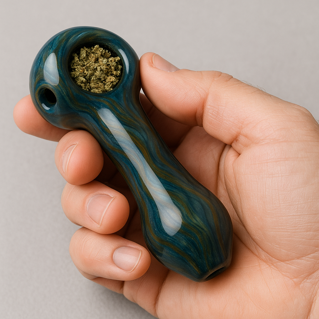 Durable handcrafted glass pipe for smooth hits. Pocket-sized, heat-resistant, and easy to clean. Each piece features a unique artistic design.